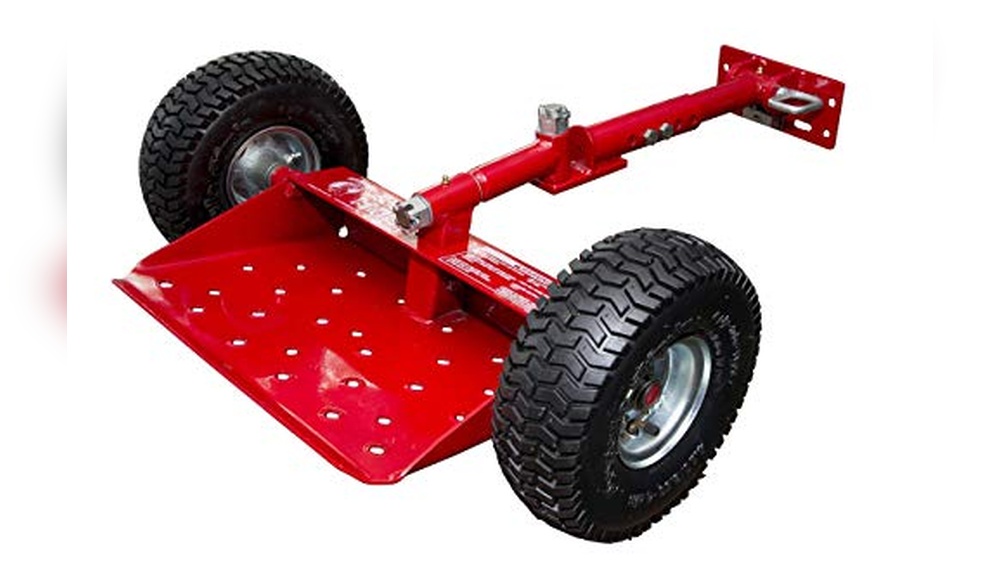 With its forward and reverse functionality, this mower-sulky trailer offers smooth navigation and simple handling, even in tight spaces. The auxiliary trailer capability allows users to haul lawn debris, tools, or supplies, transforming a standard mower into a multi-purpose lawn care vehicle. Overall, this black-colored, robustly built mower trailer from AugFir is designed to improve the productivity and convenience of lawn maintenance tasks.